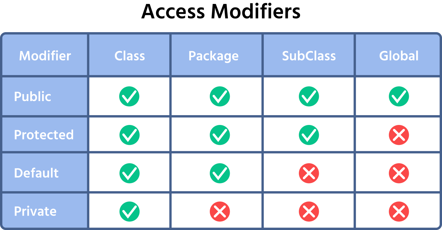 Prehľad všetkých modifikátorov prístupu: